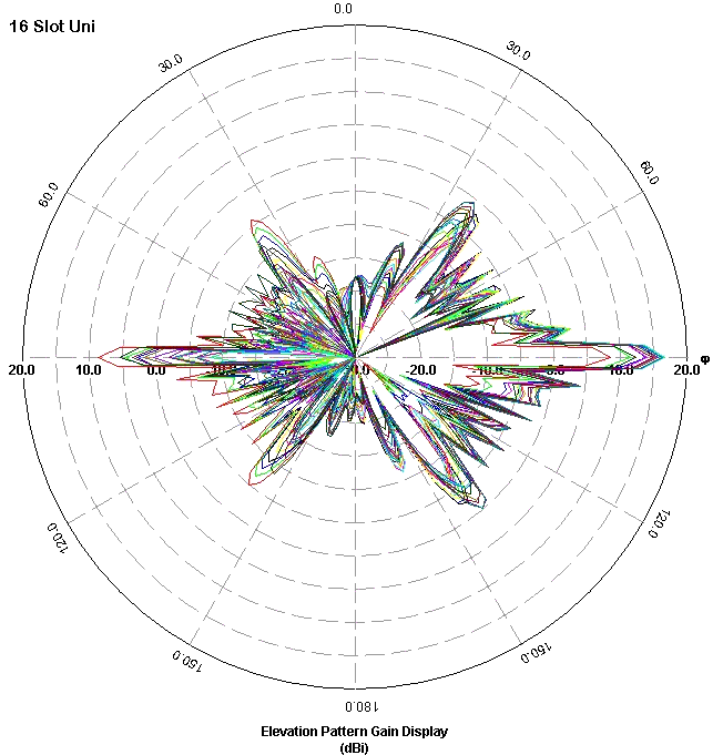Unfortunately, unless a lot of slots are used, the antenna becomes more like a bidirectional radiator, rather than an omnidirectional. This antenna was invented in the 40's, and as our simulation and measurement technologies have become more accurate it is apparent that the slotted waveguide designs we have used in the past are far from optimum. The most common defect is a 'tilt' in the radiation pattern at the extreme ends of the frequency range. This occurs when the wavelength of the signal travelling down the guide differs from the slot spacing.